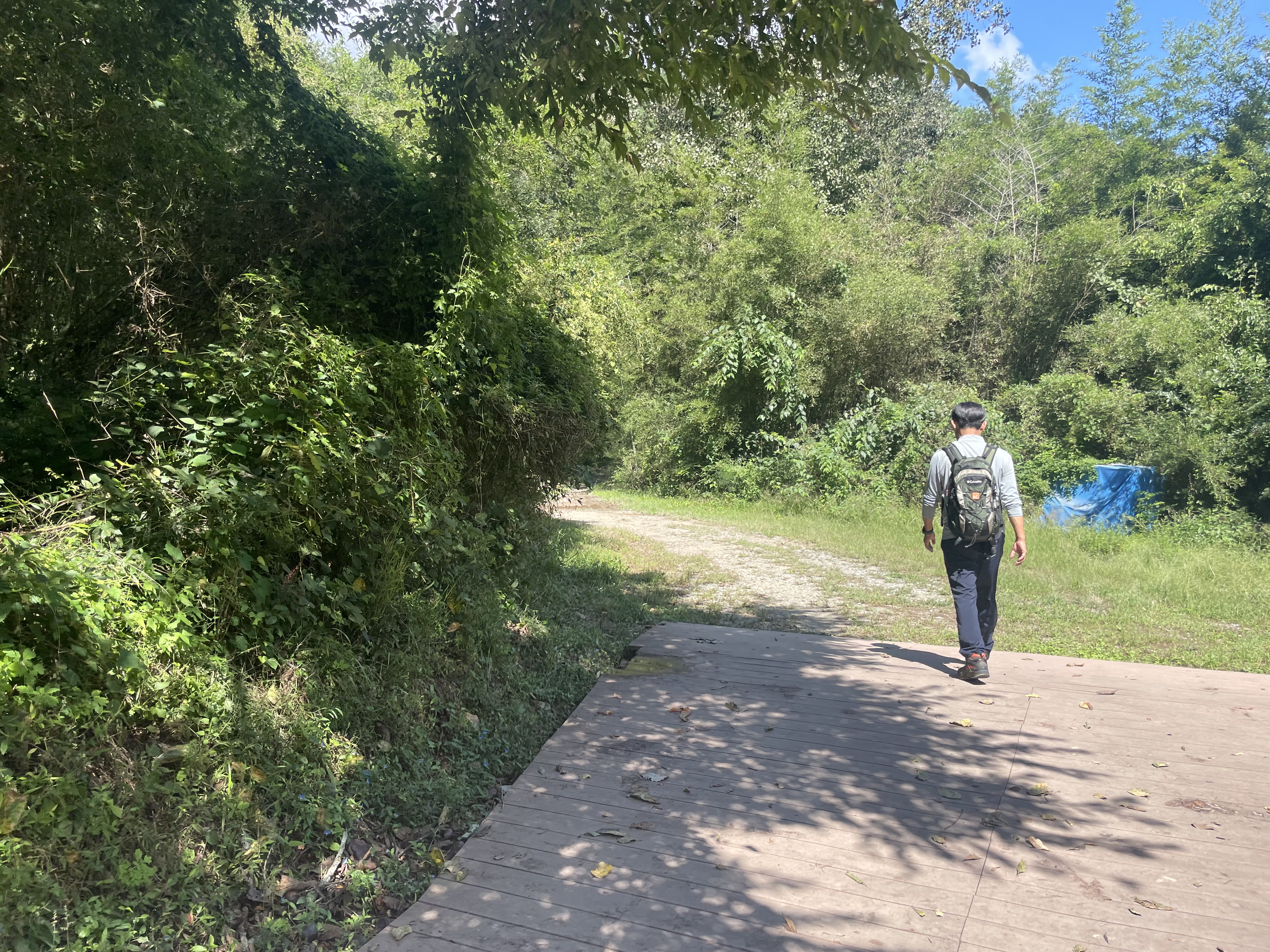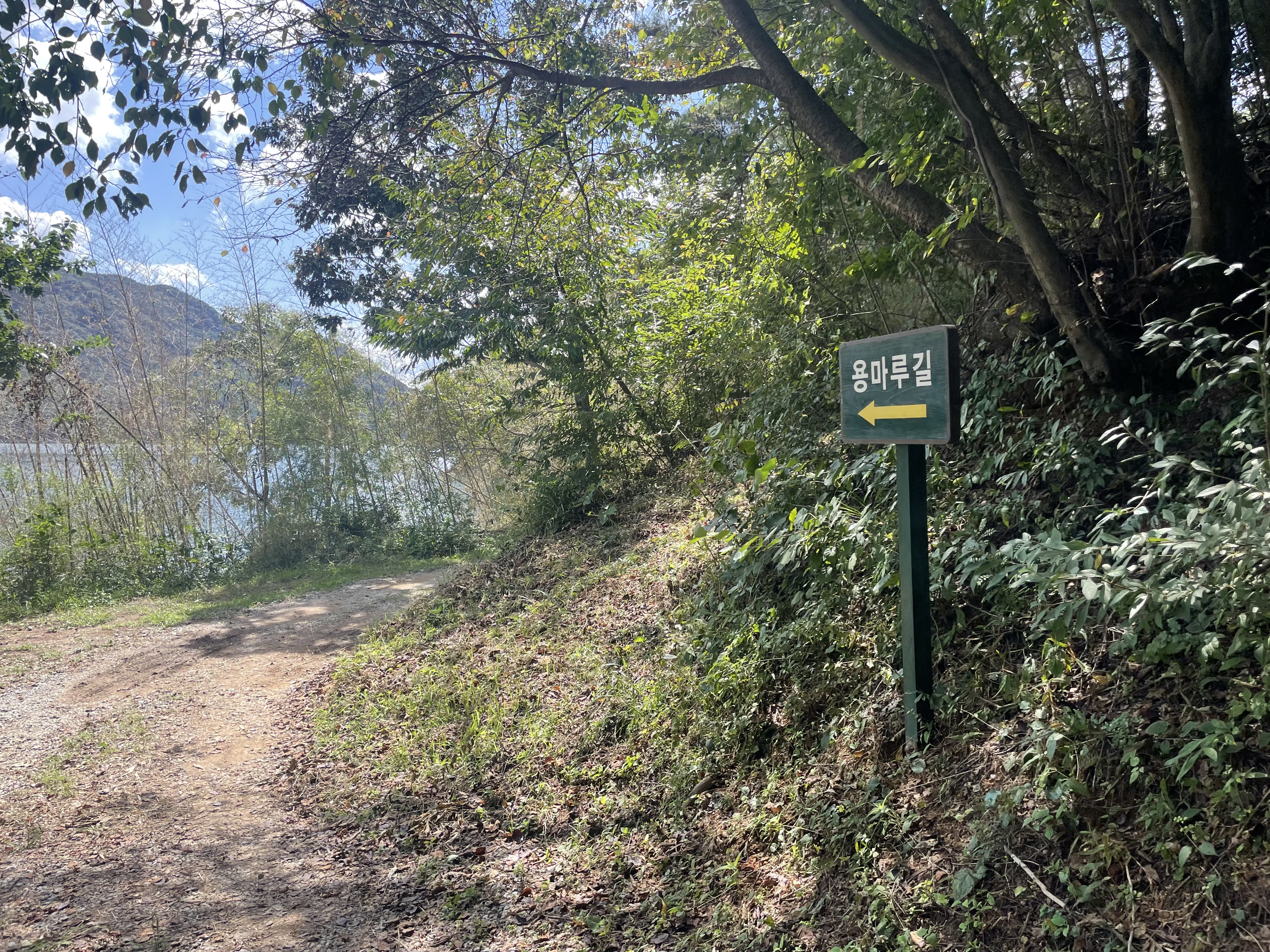 흙길 옆으로는 다양한 나무들이 그늘을 만들어주고 있다.