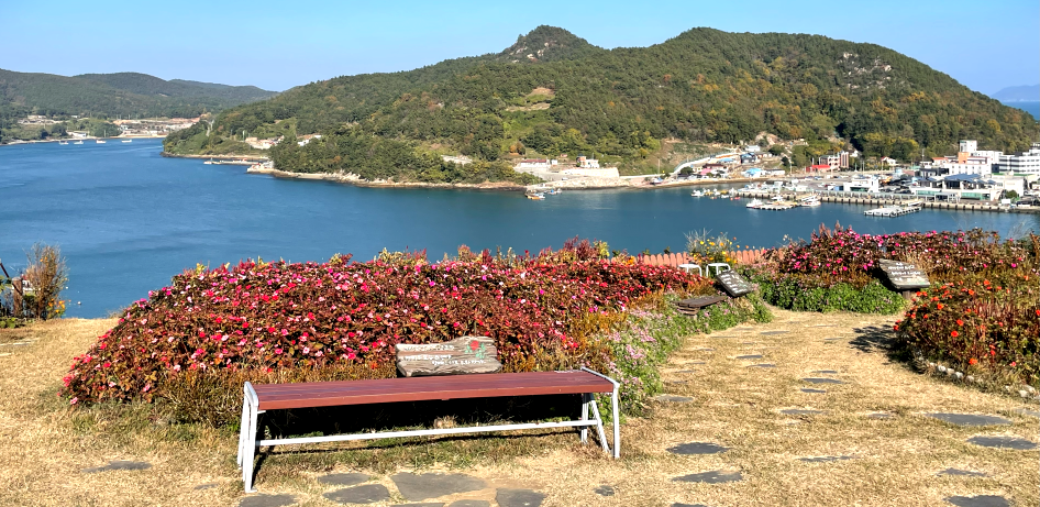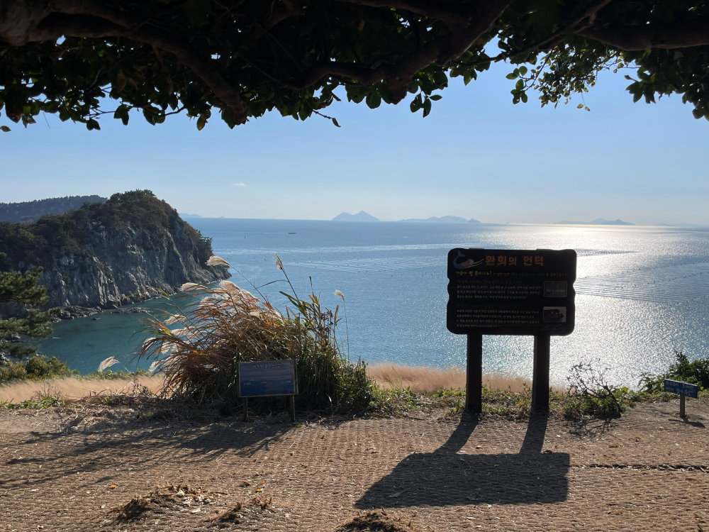 푸른 바다와 해안 풍경, 멀리 수평선과 섬들이 만들어 내는 풍경은 한폭의 그림이다.