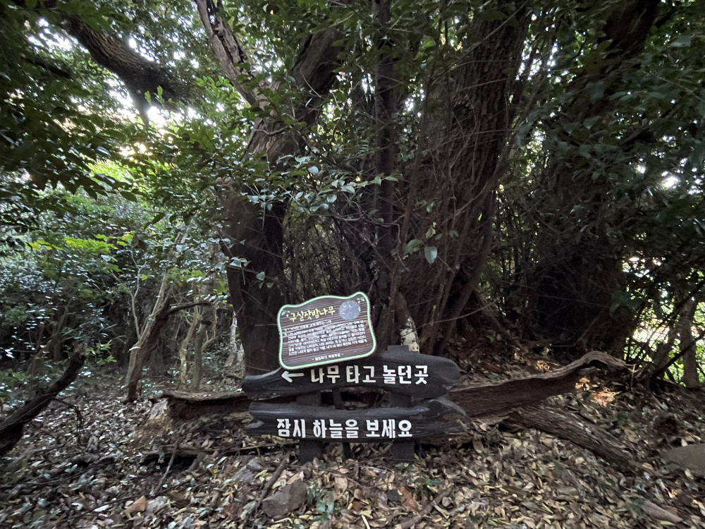 2003년 태풍'매미'로 인해 쓰러졌지만 죽지 않고 다시 새 줄기를 나서 자라고 있다.