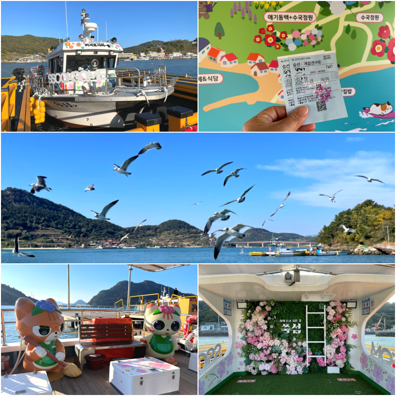 쑥섬 들어가는 길에는 쑥섬1호, 나올 땐 2호를 탔다. 올해 새로 투입된 2호에는 포토존이 마련되어 있다. 섬냥이와 쑥냥이 캐릭터