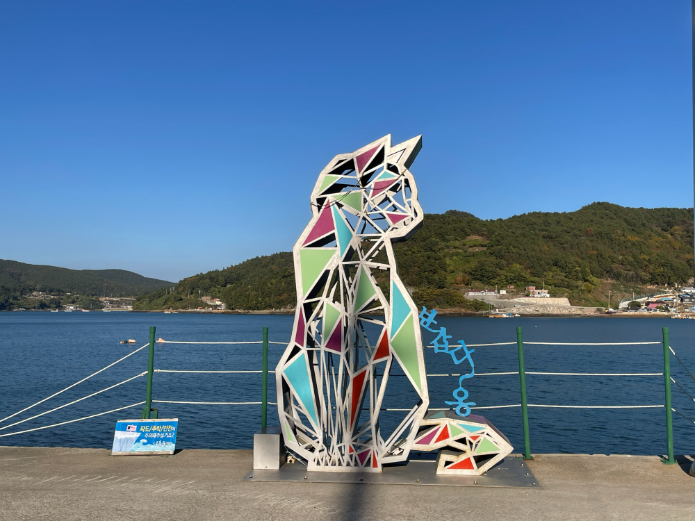 섬 곳곳에 고양이 조형물들이 설치되어 있어 이곳이 '고양이 섬'임을 알려준다.