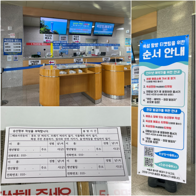 - 여객터미널안 매표소에서 배 탑승요금과 쑥섬공원입장 요금을 함께 결재