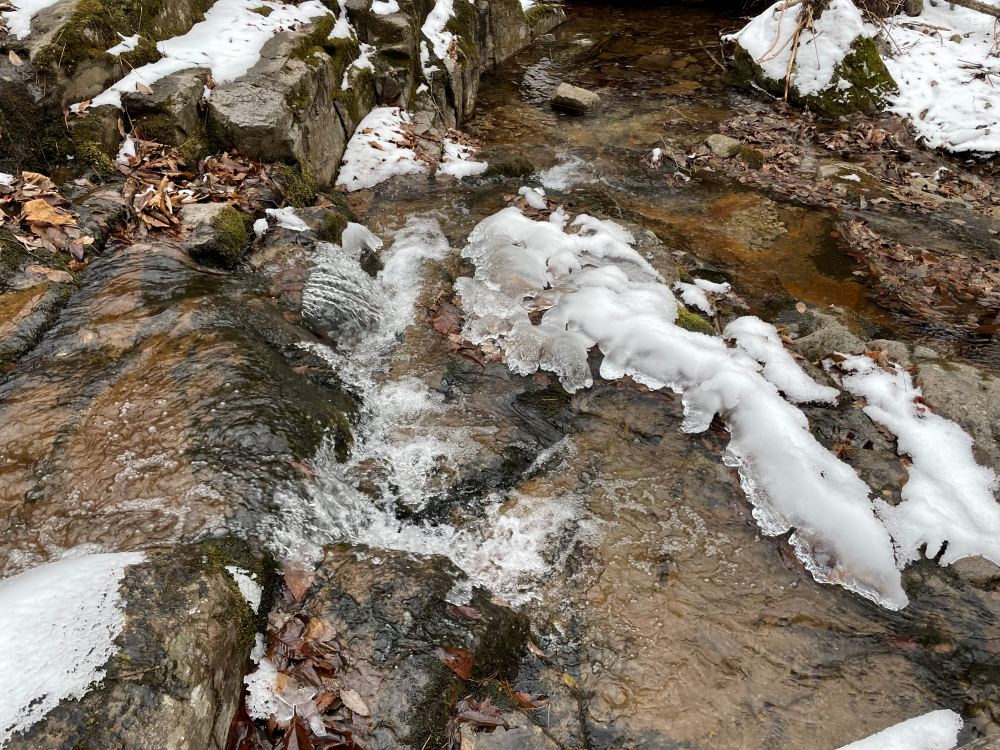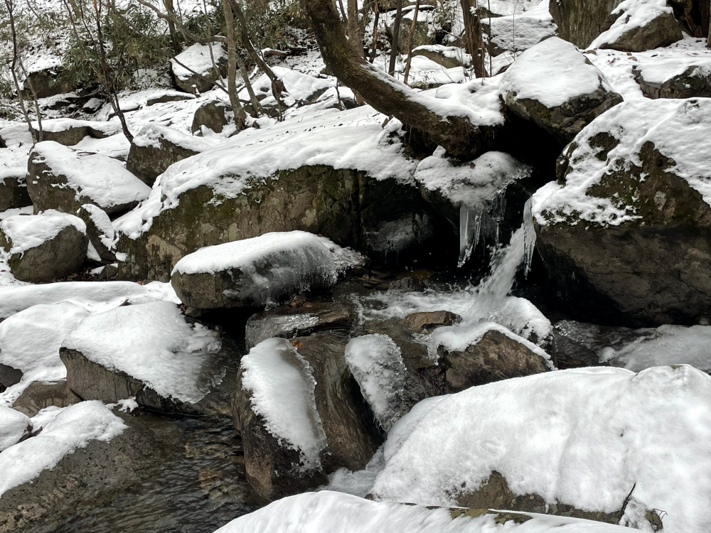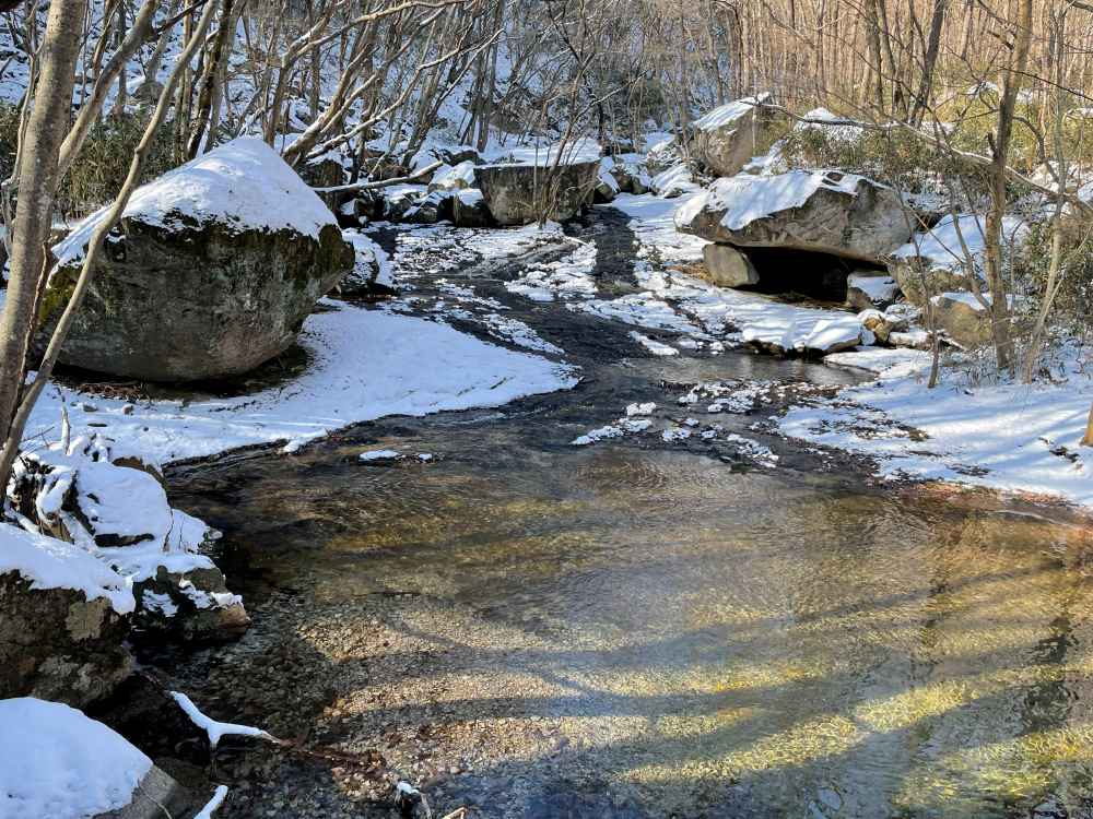 겨울인데도 많은 물이 흐르는 계곡. 남창계곡은 특별보호구역으로 출입이 금지된다.