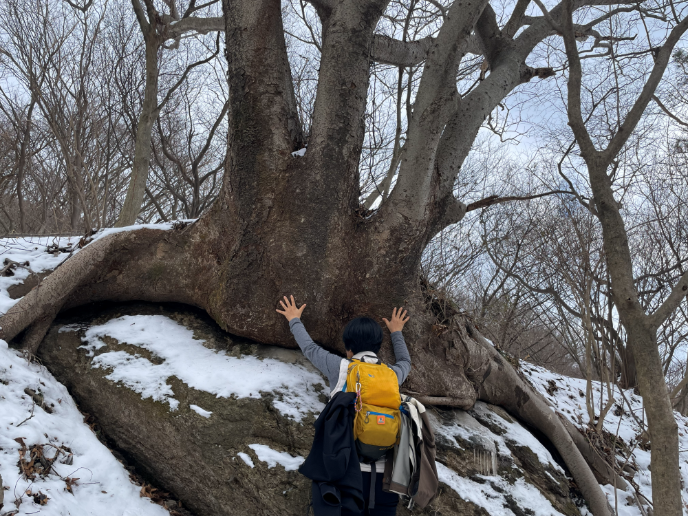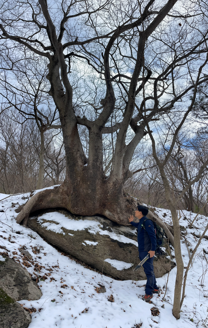 바위를 감싸안고 자라는 큰 나무에서 한동안 눈을 떼지 못했다.