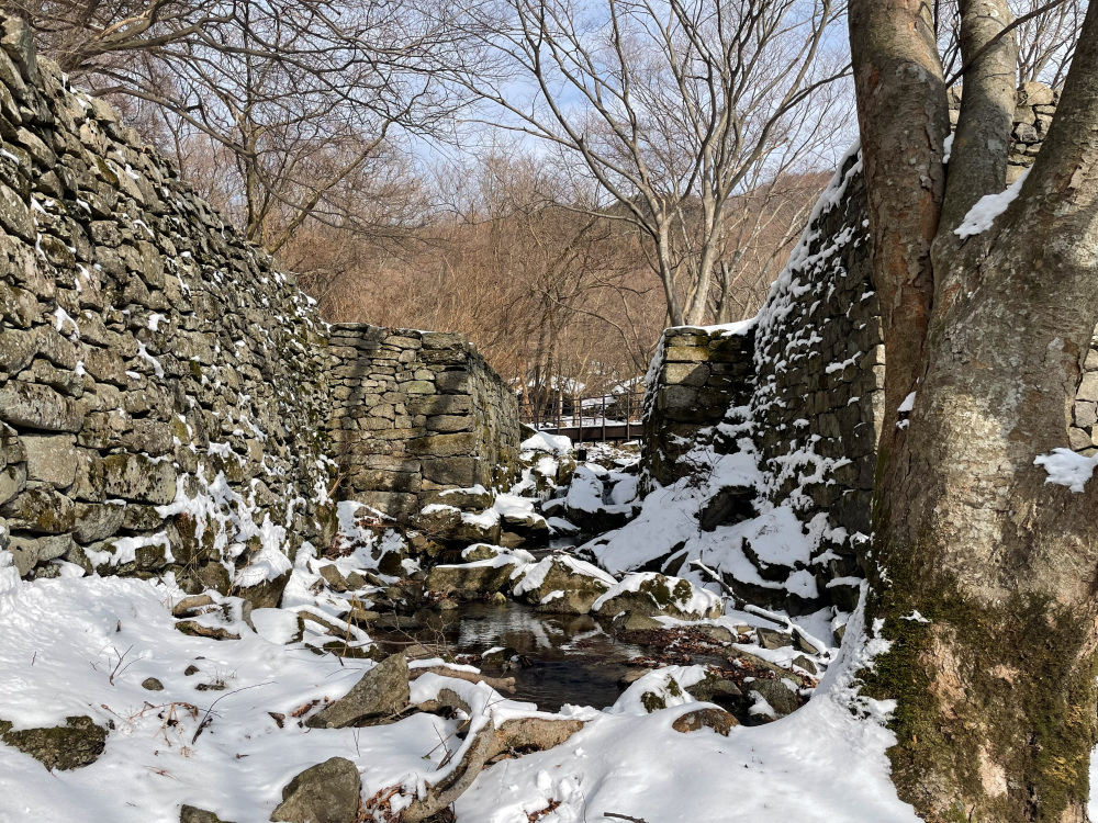 산성골에 있는 남문은 비교적 온전하게 석축이 남아 있다.