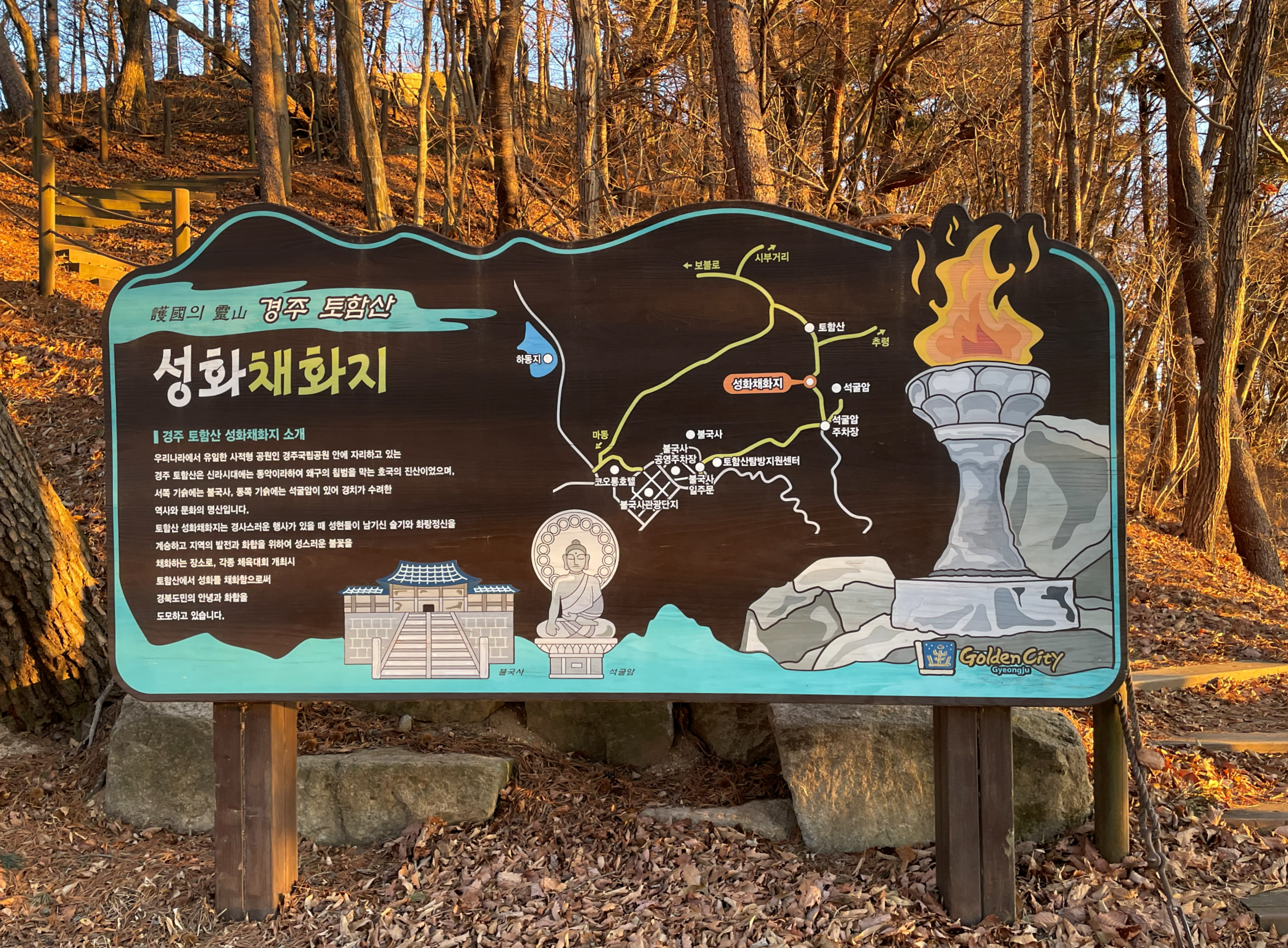 역사와 문화의 명산인 토함산에 있는 성화 채화지는 경사스러운 행사가 있을 때 성스러운 불꽃을 채화하는 장소이다.