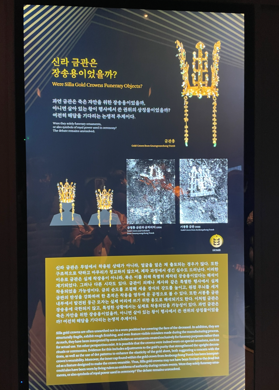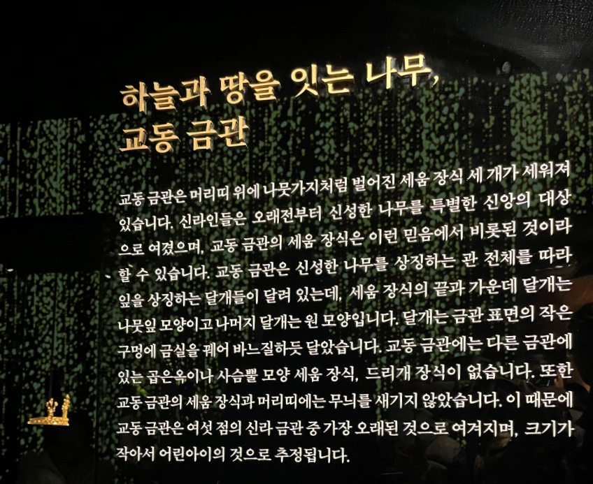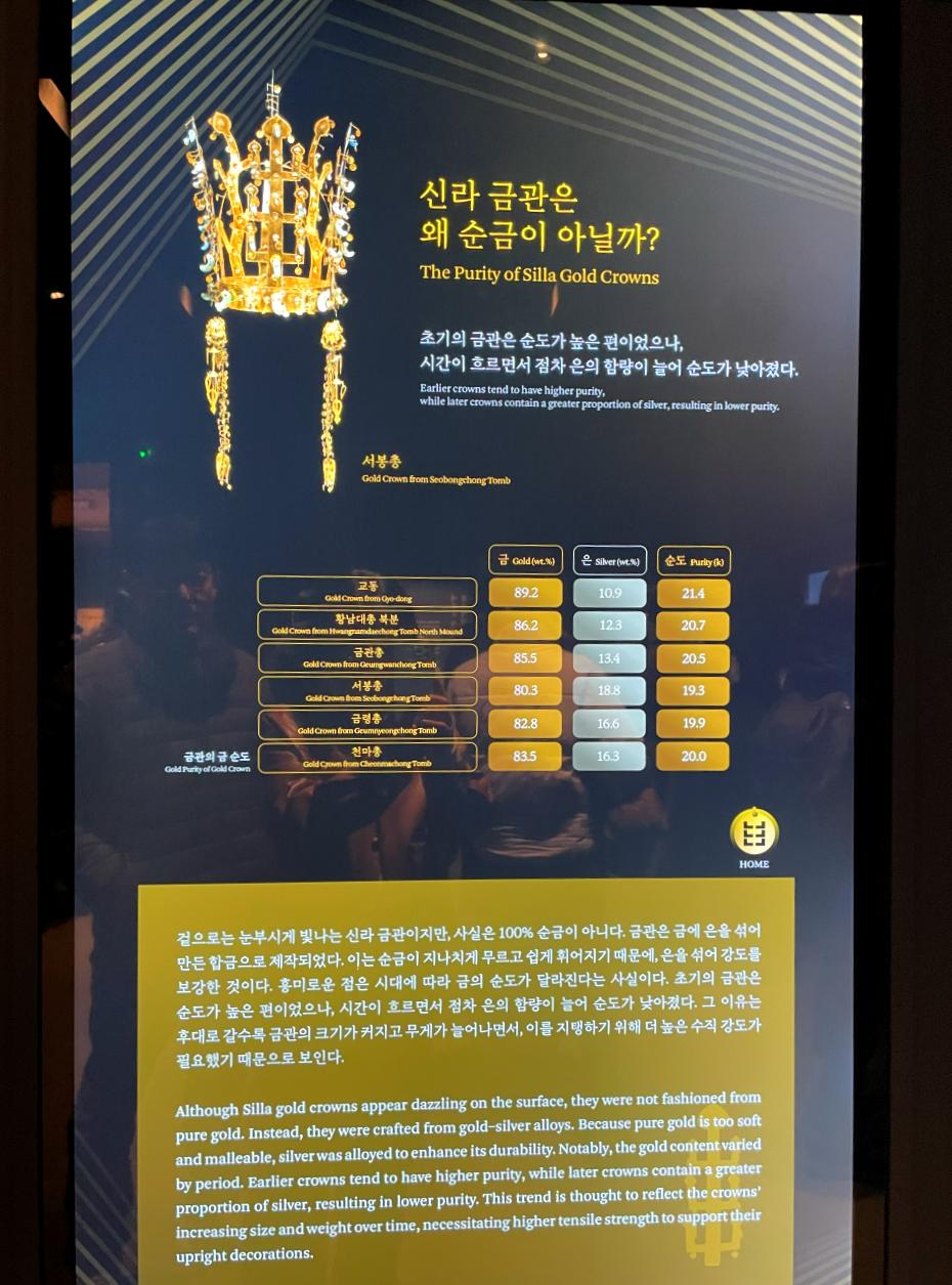 실제로 신라 금관이 함께 있는 자리는 생각보다 훨씬 경이롭고 신비로웠습니다. 오랫만에 역사 공부도 제대로 하고 신라 장인의 섬세한 기술과 금관의 아름다움에 눈을 뗄수 없었던 시간이였습니다. 전시가 끝나기 전에 와 볼수 있어서 정말 행운이였고 보물을 얻은 기분이였습니다.