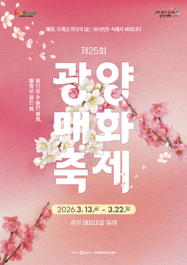 전국에서 가장 먼저 열리는 광양 매화축제에 다녀왔습니다. 긴 겨울을 지나 아름다운 꽃망울이 활짝 피어난 매화마을에서 눈부신 꽃들의 향연 속에서 매화향 듬뿍 맡으며 힐링하는 시간이였습니다.