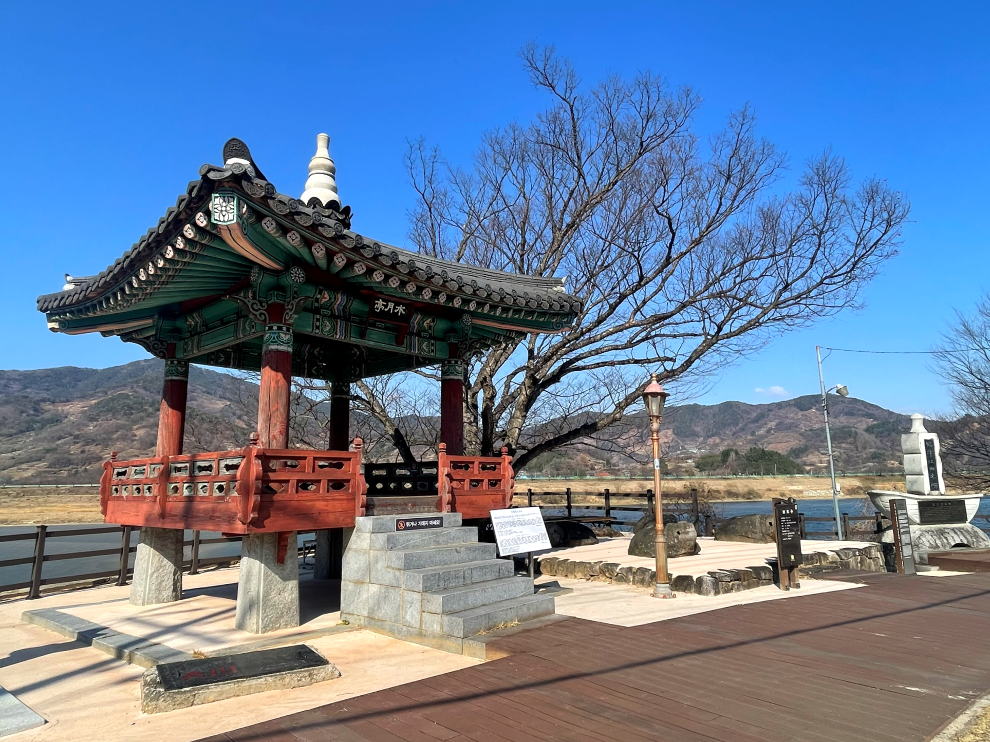섬진마을 입구에는 정자(수월정)과 290년 수령의 느티나무가 멋스럽다.