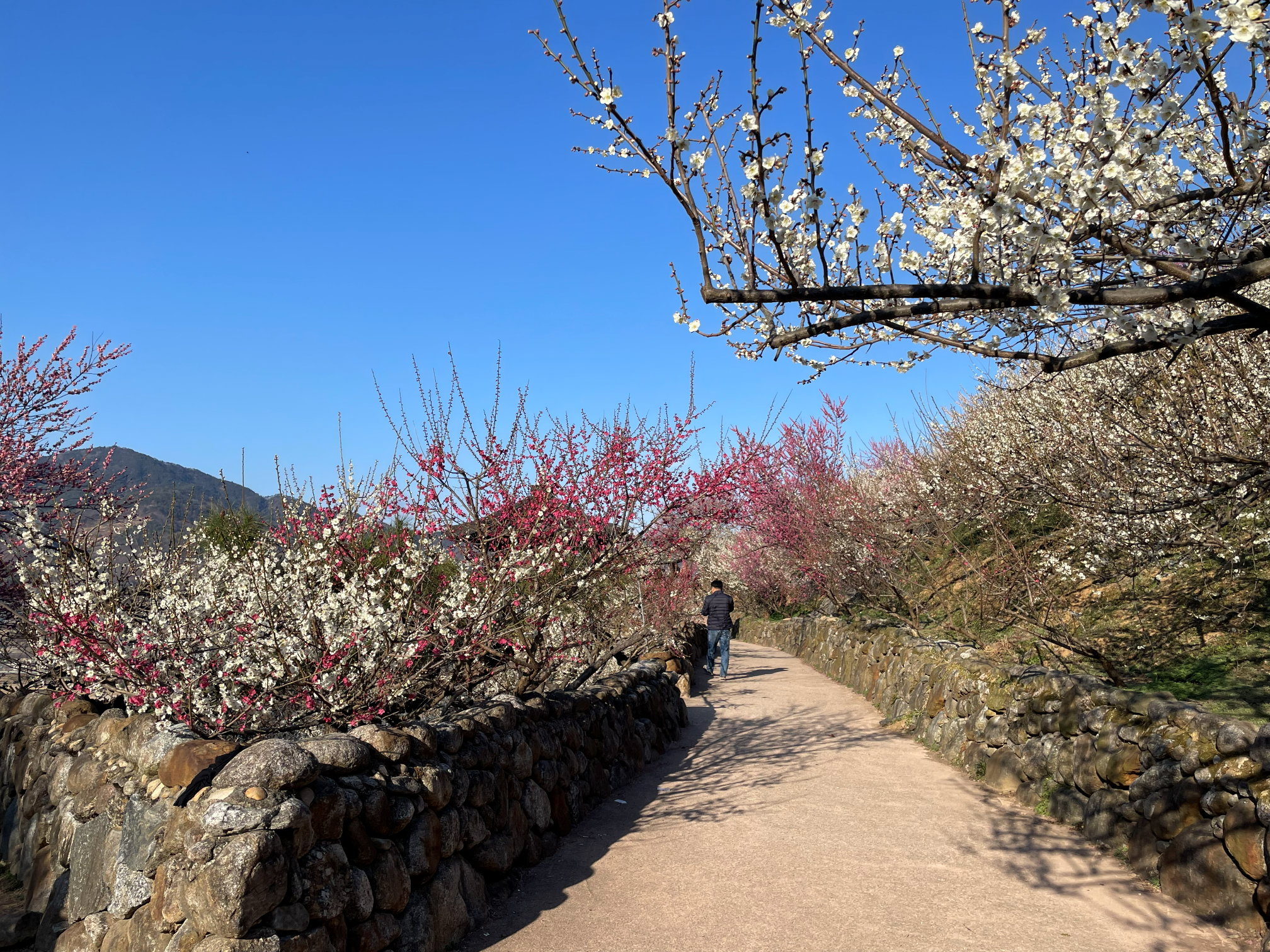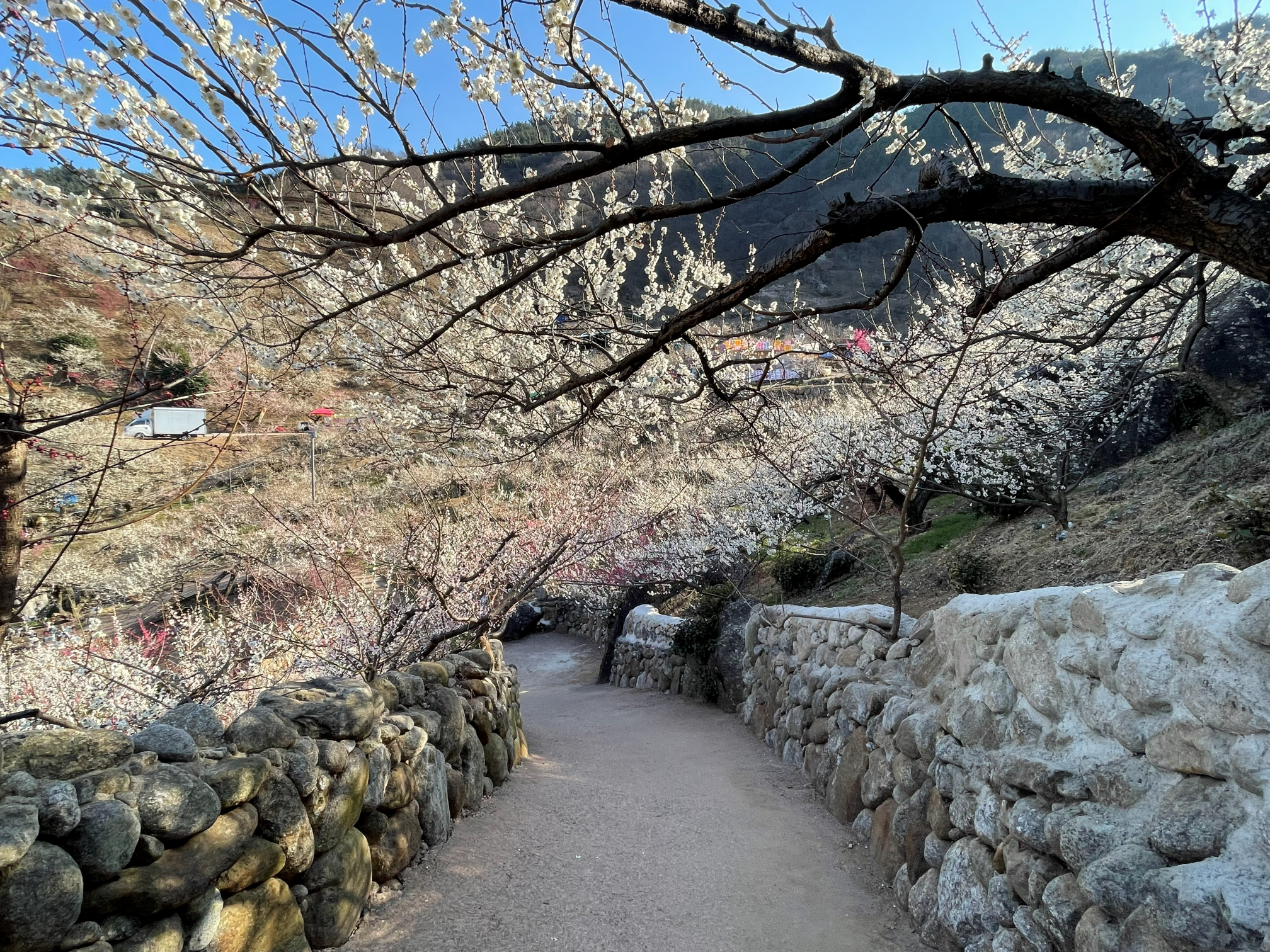 돌담길과 매화가 잘 어울리는 길